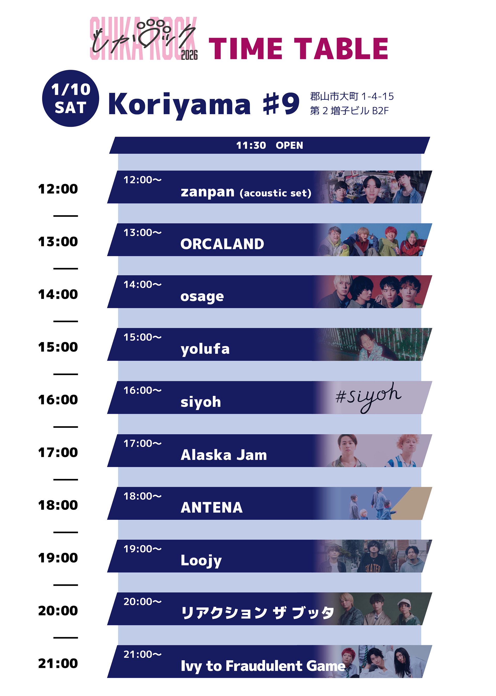 イベンターしかちゃんにより開催されている郡山の年始ライブサーキット「しかロック」の、フライヤーをはじめとしたデザインサポート全般を担当します。