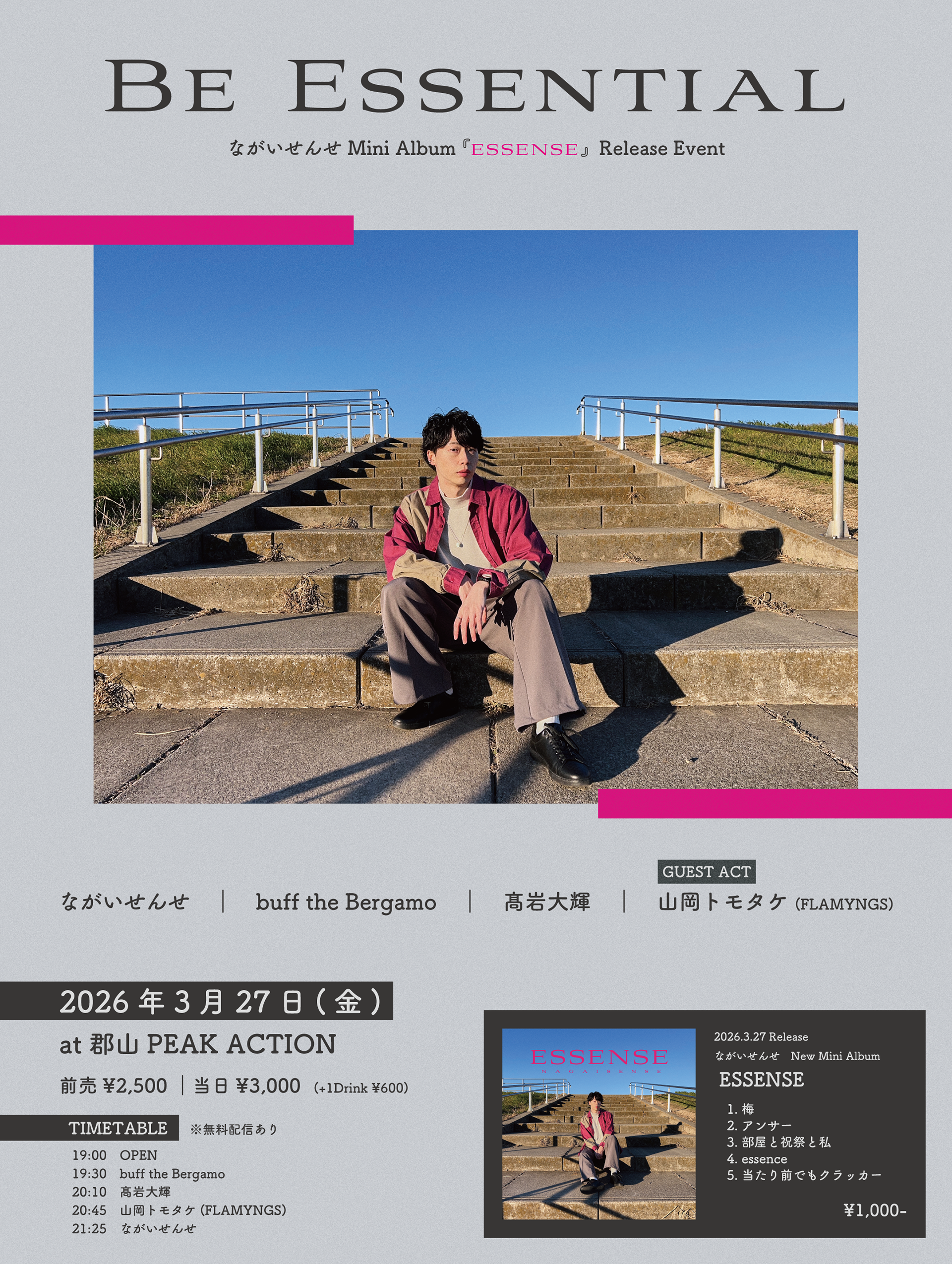 ながいせんせ(私です)のミニアルバム『ESSENSE』の音源制作、デザイン、パッケージ、販売、PR、リリースイベント企画などなどを行いました
